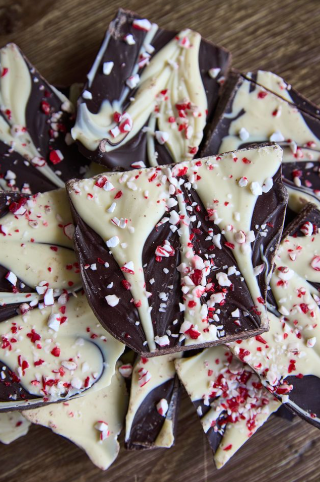 ingredients: Dark Chocolate: Cocoa liquor from Ecuador, sugar, cocoa butter, emulsifier (sunflower lecithin), natural vanilla extract. White Chocolate: Ecuadorian sugar, Ecuadorian cocoa butter, Ecuadorian whole milk powder, emulsifier (sunflower lecithin), natural vanilla extract. Organic Peppermint Essential Oil: Organic peppermint essential oil (mentha piperita). Crushed Red and White Peppermint Candy Pieces: sugar, glucose syrup, water, titanium dioxide, artificial flavor, FD&C Red 40