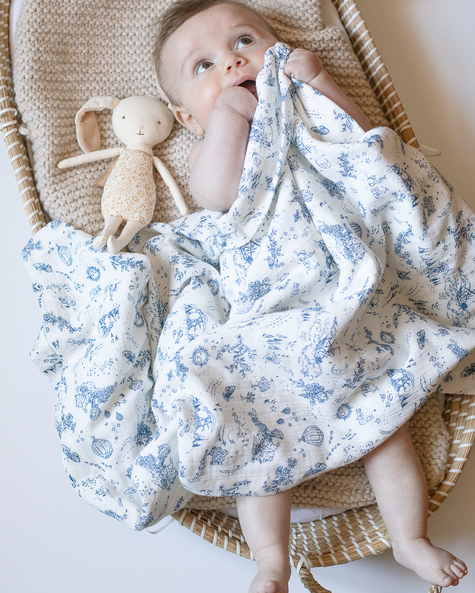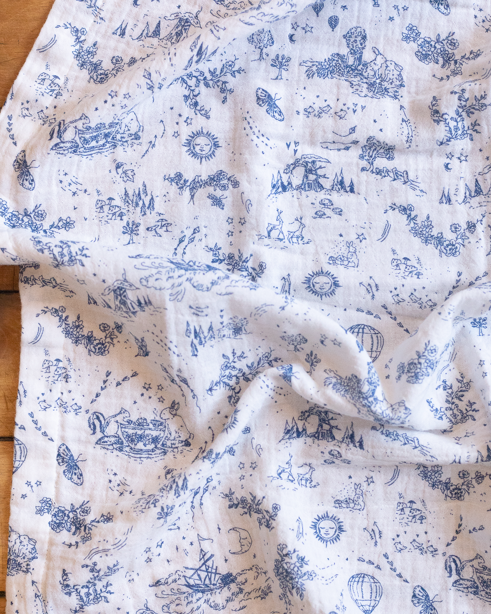¡Buen día, pequeños! El país de los sueños te espera con nuestra increíblemente suave y gentil manta de algodón 'rêverie'. El elegante estampado toile de cuentos agregará un toque de fantasía a todo, desde acurrucarse a la hora de la siesta hasta citas para jugar por la tarde y más. esta manta multiusos se puede usar en la guardería o cuando está de viaje; el material transpirable y liviano es perfecto para amamantar, abrazar e incluso bloquear el sol durante su próximo paseo soleado.