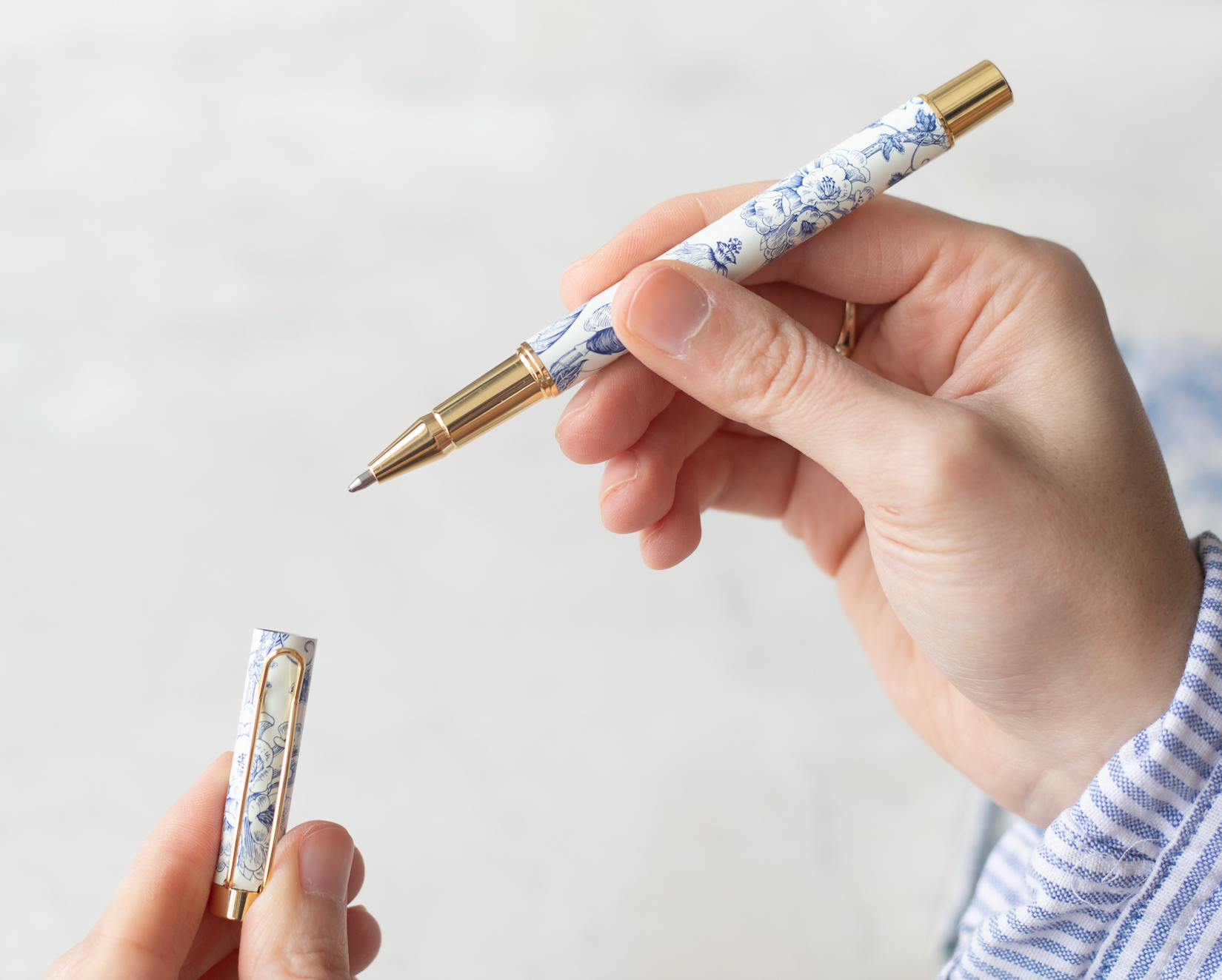 add timeless elegance to your writing routine with our blue delft and striped pen set. perfect for jotting notes, planning your week, or adding a touch of sophistication to your workspace, these pens blend beauty and functionality effortlessly. whether you're organizing your desk or gifting them to someone special, they’re an ideal addition to any collection of stylish office accessories.