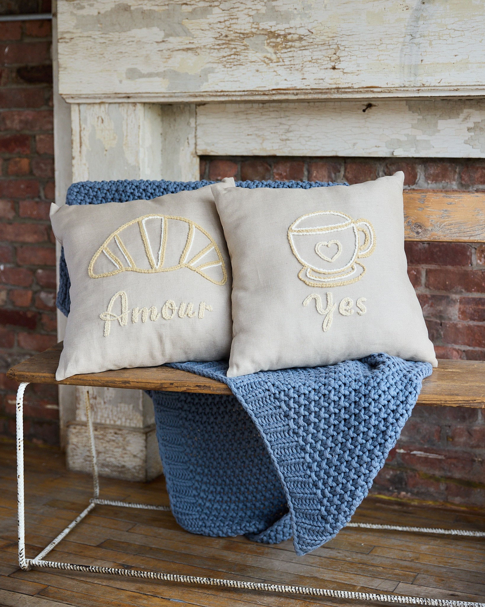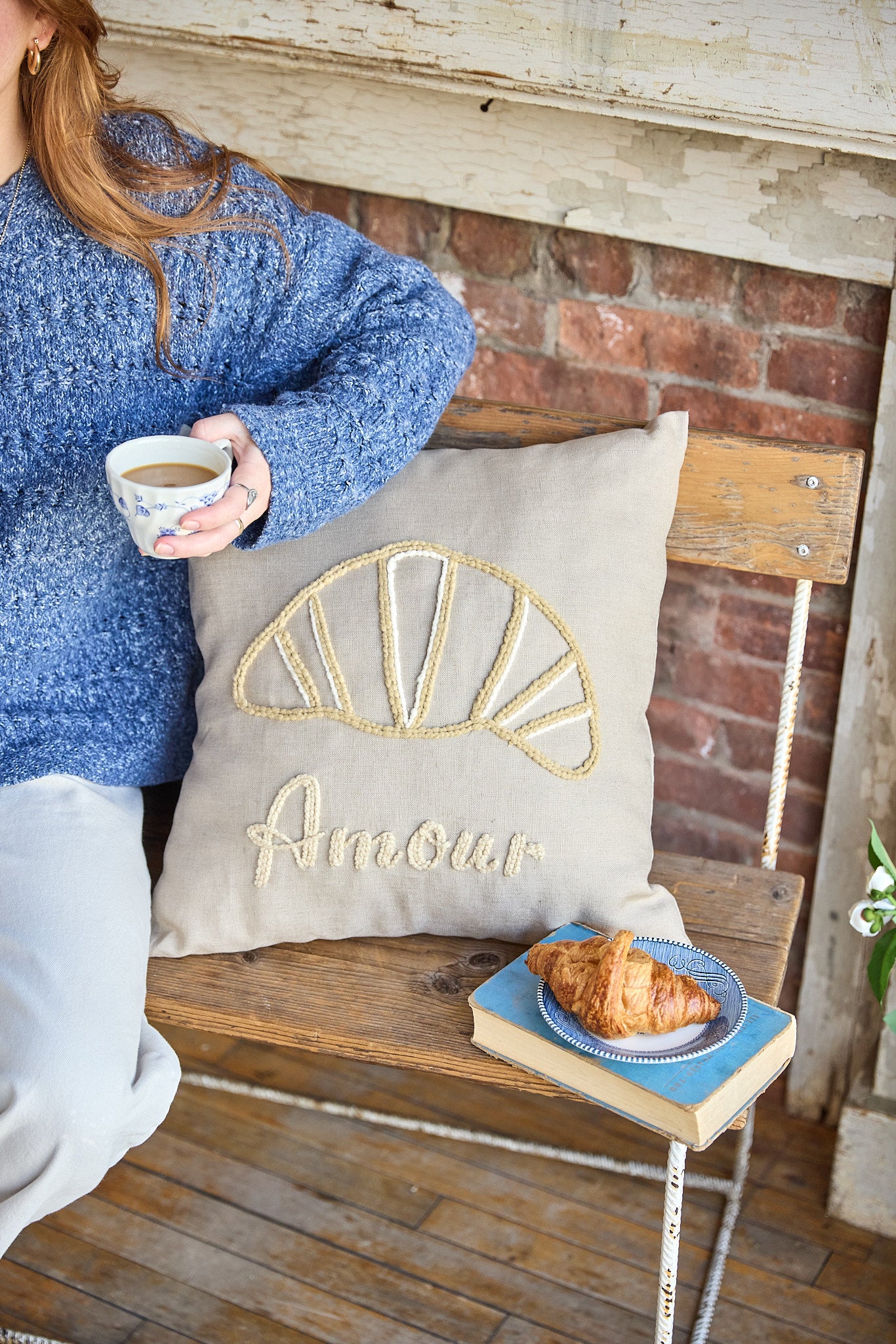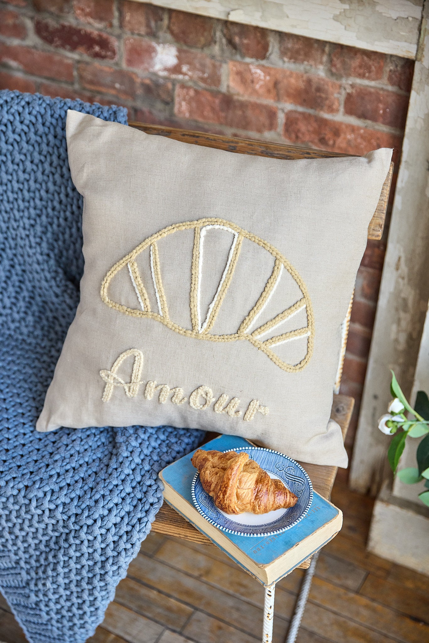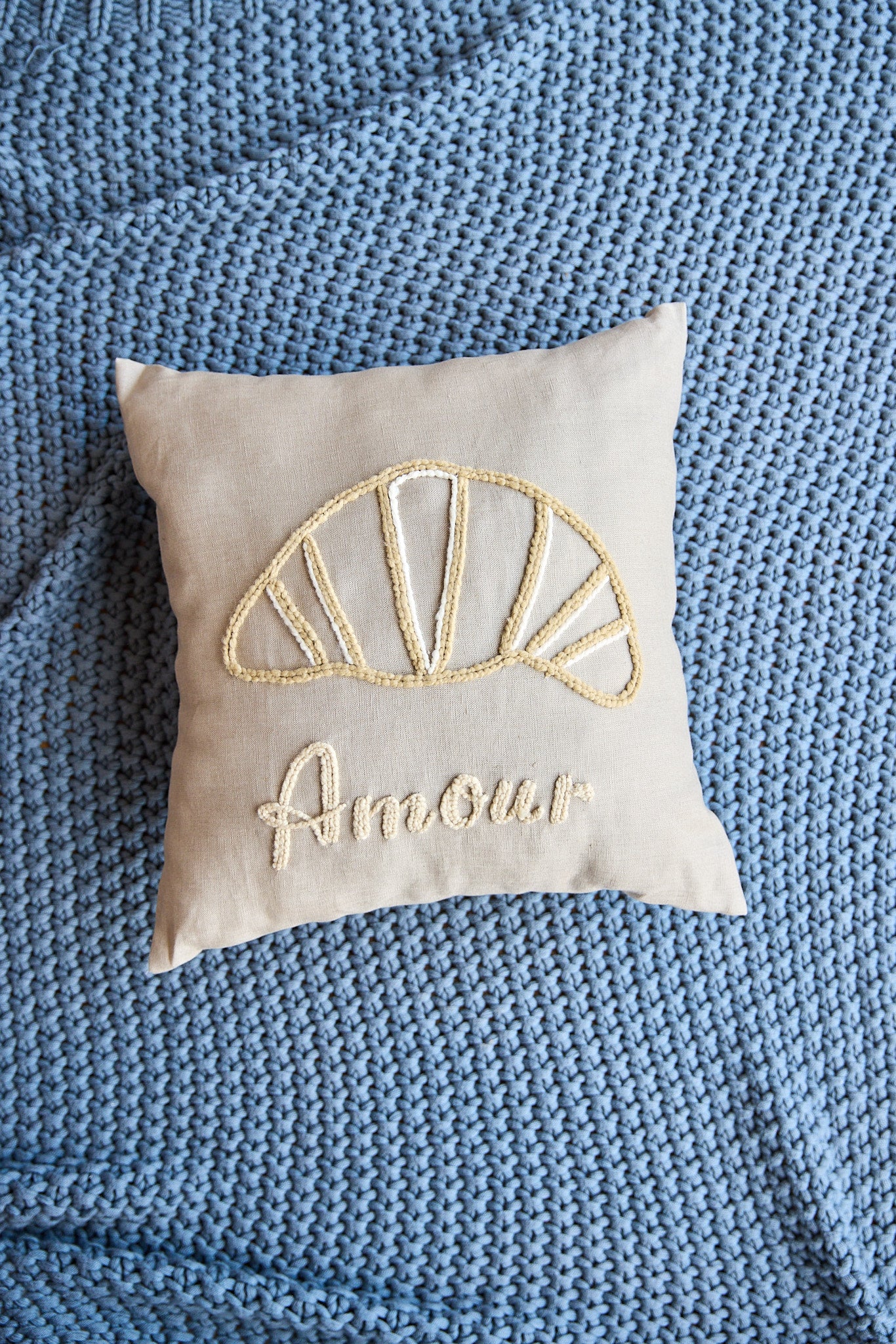 "amour" croissant pillow