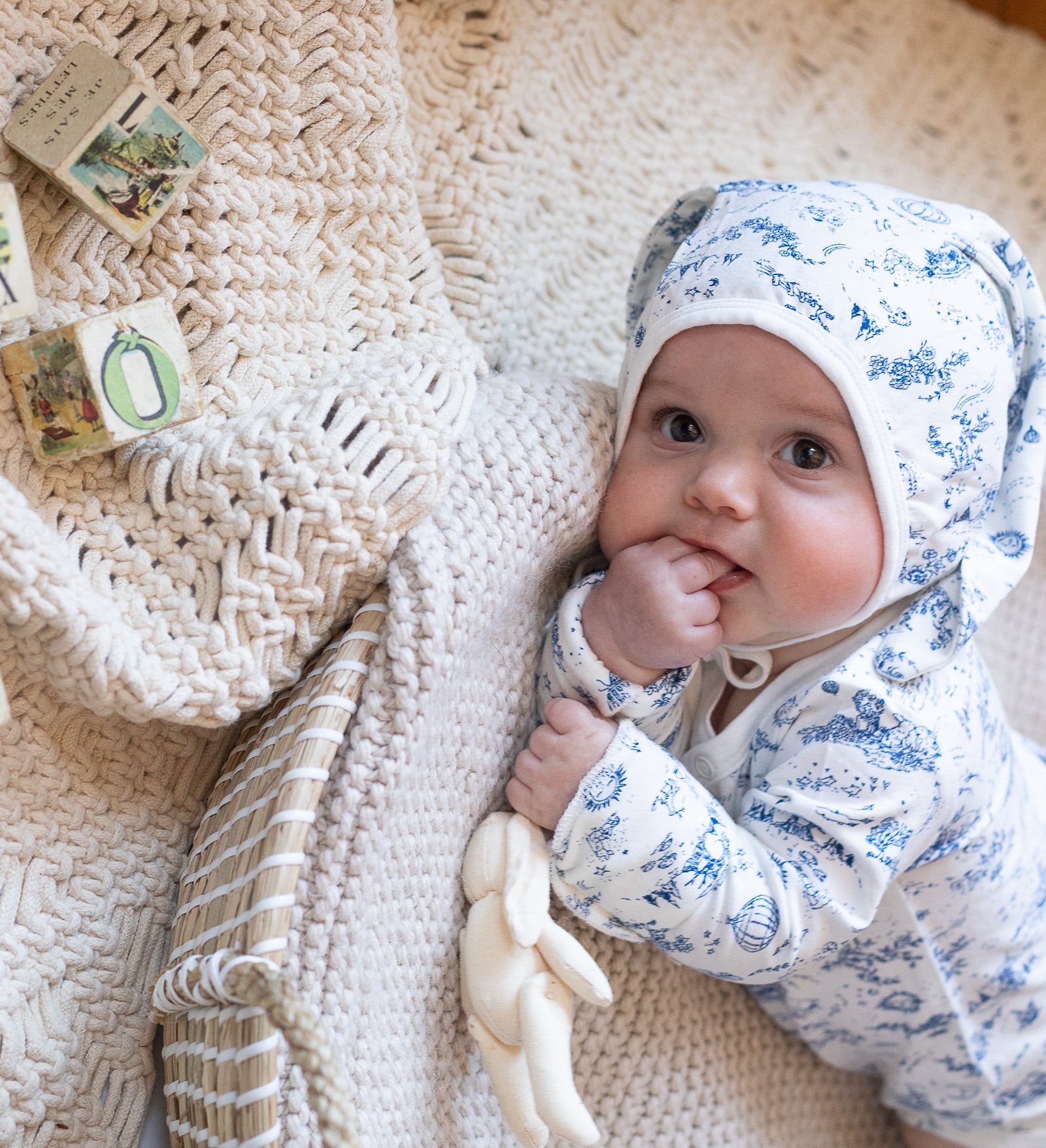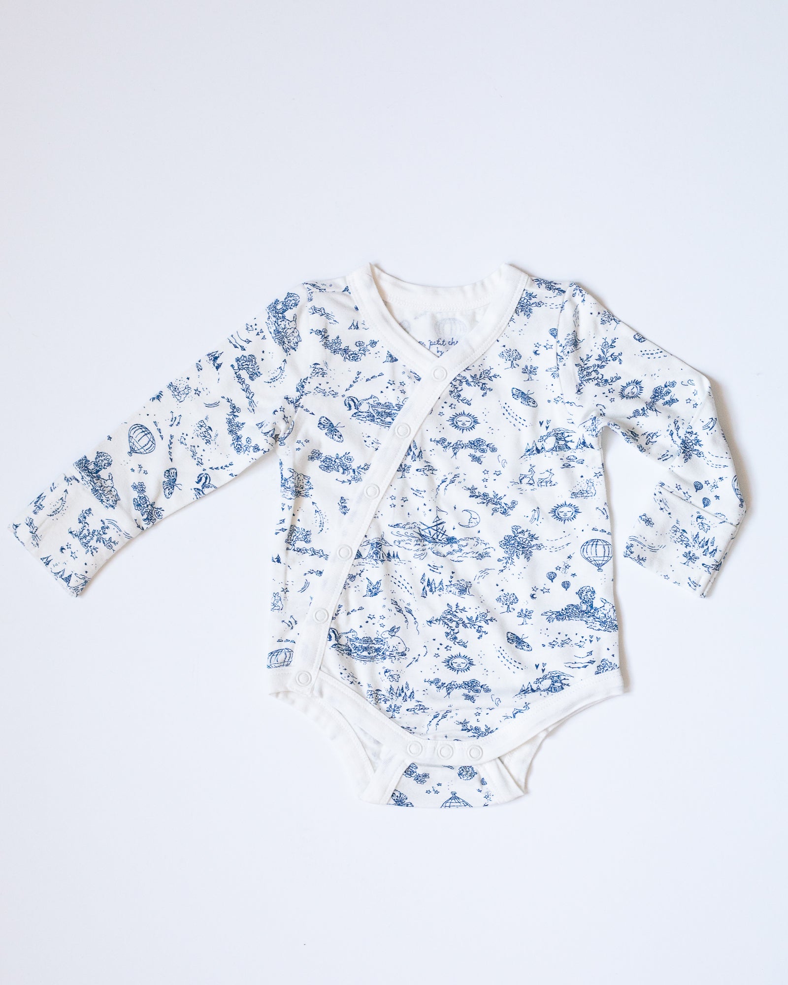 let your little one’s imagination run wild with our storytime toile ‘jannie’ wrap-around bodysuit! conjuring images of sweet lullabies & fairy tales, this silky soft one-piece is crafted from a comfortable bamboo jersey material that bébé will never want to take off. designed with new mamans & newborns in mind, this wrap suit features three button snaps on the bottom to make diaper changes as easy as “un, deux, trois!”